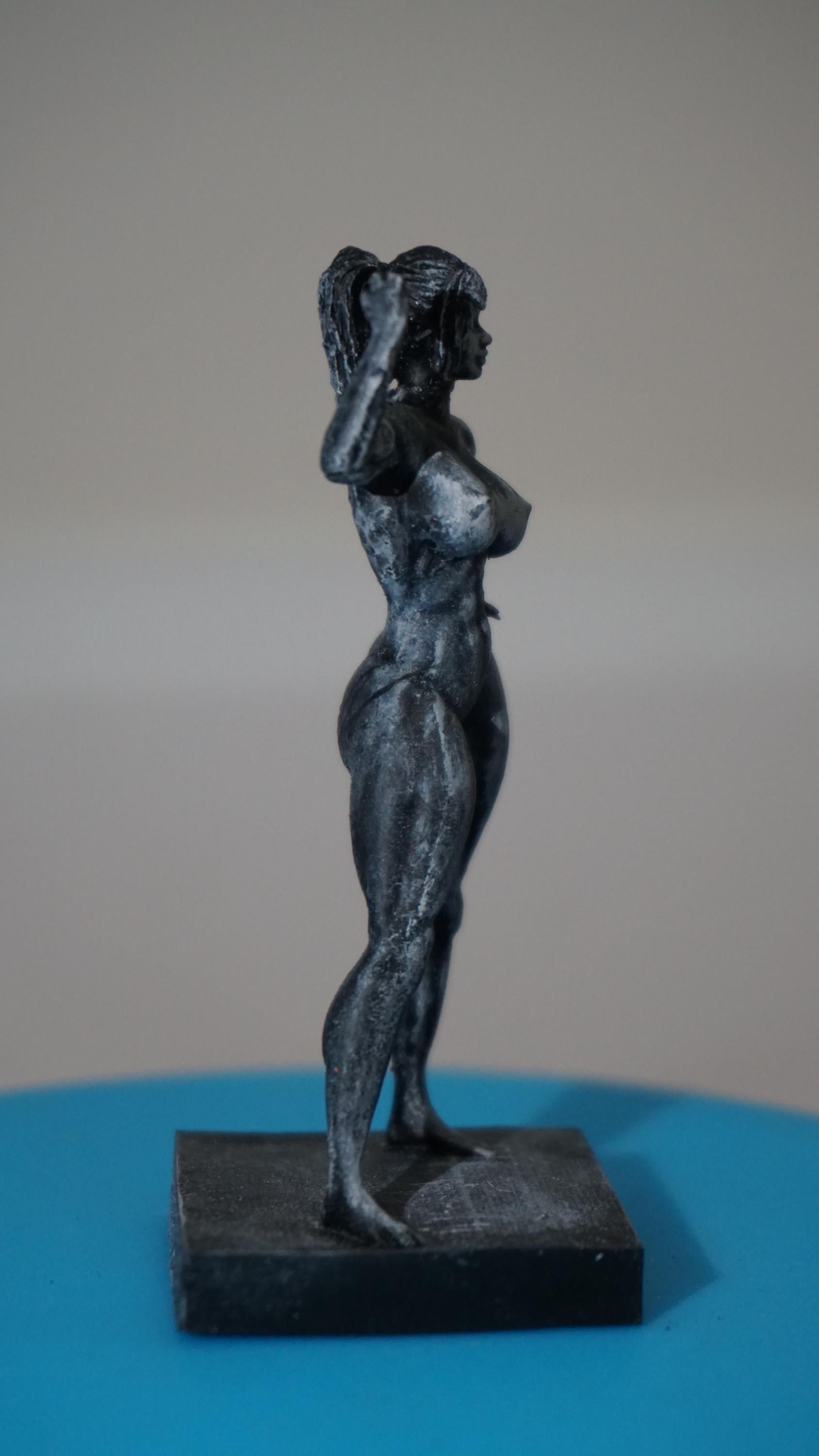 Iron Grace is a powerful tribute to the strength and beauty of the muscular female form. This sculpture features a nude female bodybuilder captured mid-flex, every contour defined with precision and purpose. Her stance exudes raw power, discipline, and confidence—yet retains an undeniable elegance. This piece challenges expectations and celebrates the intersection of strength and femininity without apology.